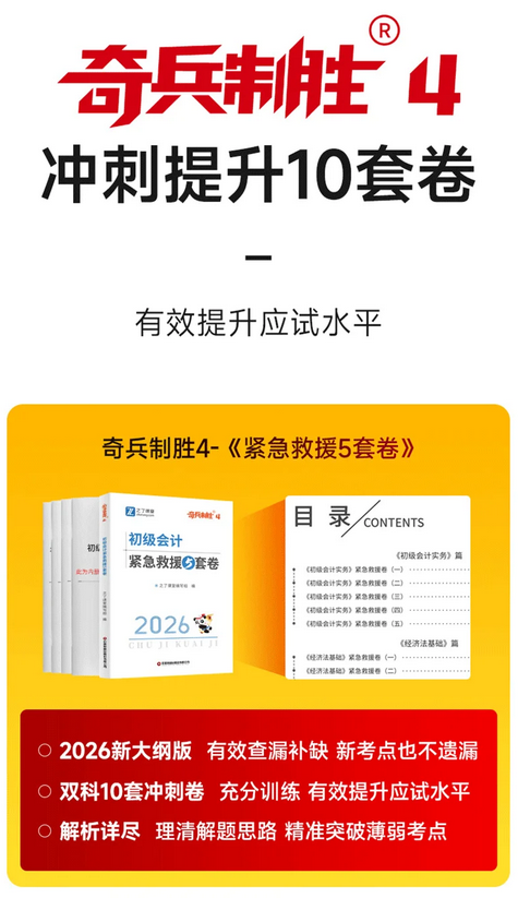 优先《奇兵制胜4紧急救援5套卷》,含10套模拟题+电子题库+押题,还原考场题型与难度,解析标注命题规律,助力考前实战演练。
