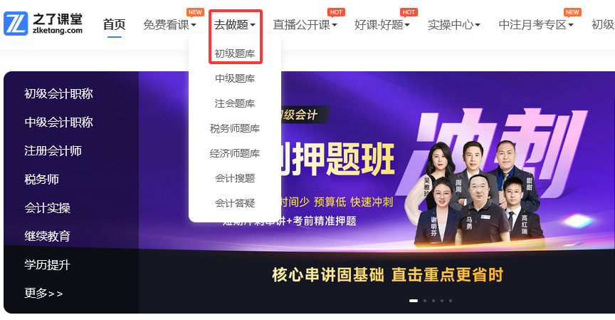 一、之了课堂初级会计题库核心资源分布