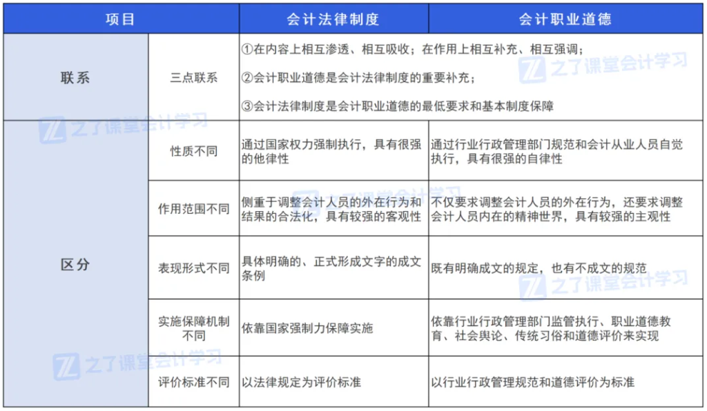 4、会计法律制度和会计职业道德的区分